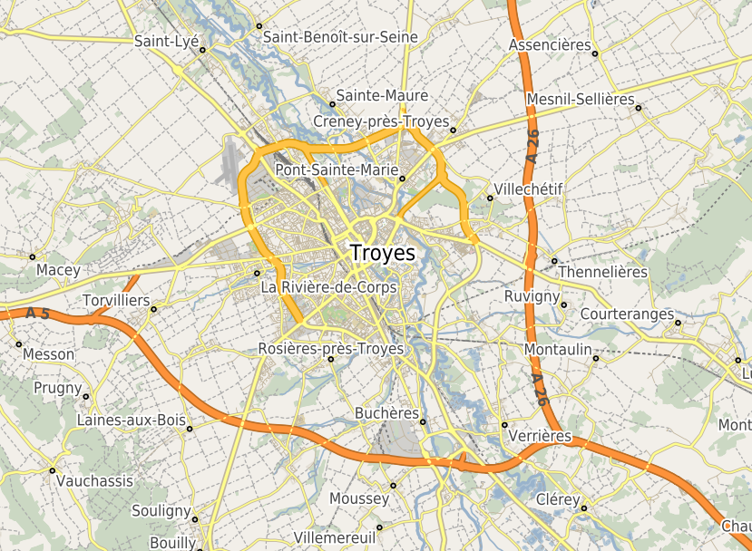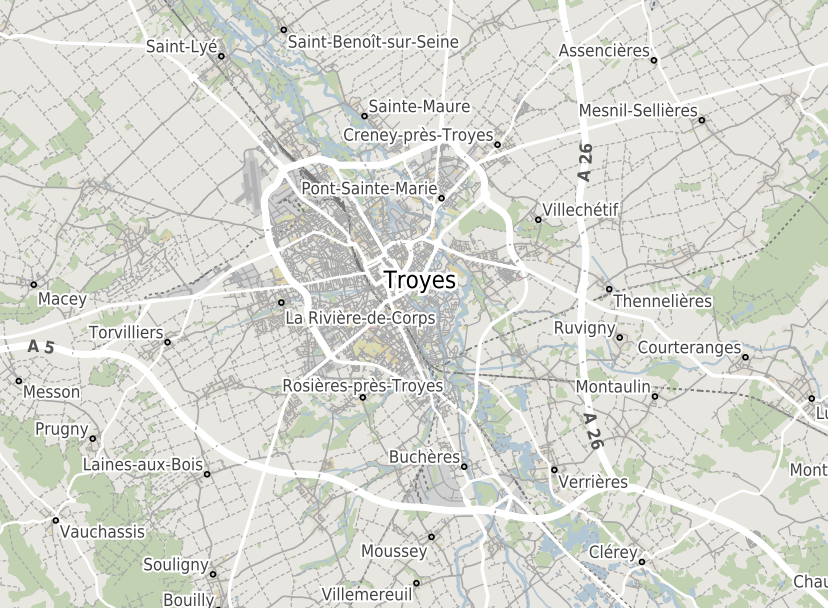 Fond de plan avec un style inspiré de la cartographie OpenStreetMap classique. Un grand classique des fonds de plan, utile en toutes circonstances! |